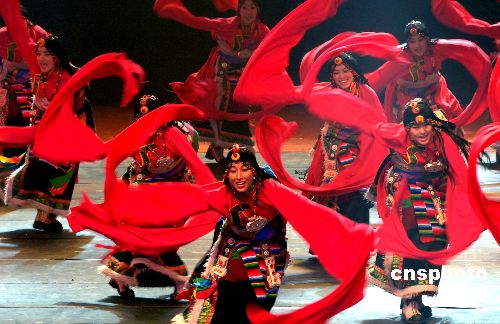 11月29日晚,由著名舞蹈家楊麗萍擔任總編導并領銜主演的大型藏族原生態歌舞樂《藏謎》在福州上演,這是首部全景式展現藏族原生態文化的大型歌舞樂演出,讓全場的觀眾充分領略藏族文化的博大精深。中新社發 劉可耕 攝