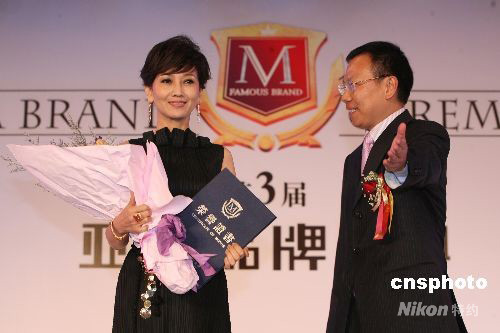 九月九日,第三屆亞洲品牌盛典頒獎典禮在香港迪士尼國際會議中心隆重舉行,香港著名演員趙雅芝榮獲“亞洲品牌代言人年度大獎”。中新社發 武仲林 攝