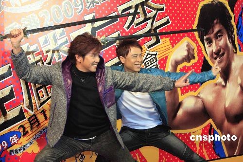 “香港2009東亞運動會左麟右李演唱會”將于明年二月一日至七日舉行。十二月十九日,藝人譚詠麟、李克勤在記者會上為演唱會造勢宣傳。中新社發 張勤 攝