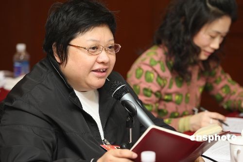 3月4日,全國政協十一屆二次會議進行分組討論。韓紅在青聯界小組討論上發言。中新社發 傅丹丹 攝