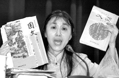 除了歷史教科書的改革備受爭議意外,語文課本向來也是藍(lán)綠打口水仗的地方。據(jù)臺灣媒體報(bào)道,最新的“99課綱”規(guī)定,文言文在課本中所占比例從原先的高一40%、高二45%、高三50%,改為彈性的45%至65%。但為了減輕學(xué)生負(fù)擔(dān),可選篇目由原來的40篇?jiǎng)h減至30篇,預(yù)計(jì)2012年的高中新生能用上。