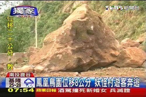 往鹿谷里面走,投56線也出現(xiàn)坍方,巨石滾下來,在路面上砸出1條長長的裂痕,田底村13戶住戶,還有30多名采茶工人,還受困在村內(nèi),等待救援;觀光景點鳳凰谷鳥園,也因為地牛翻身,產(chǎn)生位移、樓梯下陷,地面高低落差將近8公分,園方也宣布暫時封園