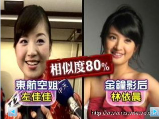 身穿紅藍(lán)色旗袍,空姐們一字排開,她們都是參與直航包機(jī)、由航空公司精挑細(xì)選出的美麗代表,仔細(xì)看,一位笑容甜美的空姐是不是很像誰呢?東航空姐左佳佳說,乘客說她長(zhǎng)得像林依晨,她也覺得自己笑起來的樣子挺像的。其實(shí)左佳佳不只是笑容,她彎彎的眼睛,還有圓潤(rùn)的臉型,跟林依晨至少有80%相似程度。