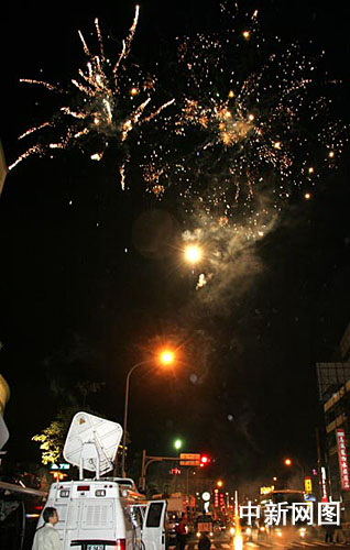 支持國民黨的民眾在中國國民黨中央黨部大樓外施放煙火,慶祝“立委”選舉大勝。 作 者:孫自法