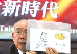 臺灣師范大學校長郭義雄展示諾貝爾物理獎得主李政道親自畫的鼠年賀卡 中國時報圖