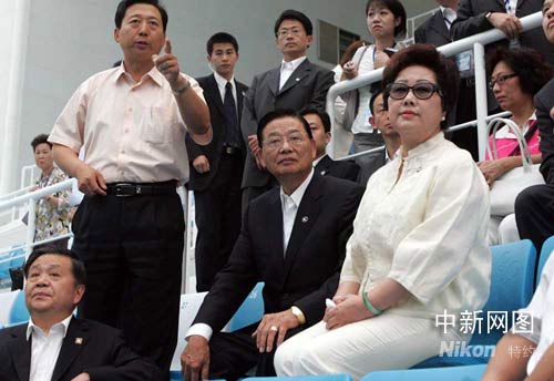 中新網北京6月12日電 12日下午15時19分許,;鶗麻L江丙坤一行抵達北京奧運場館“水立方”參觀。