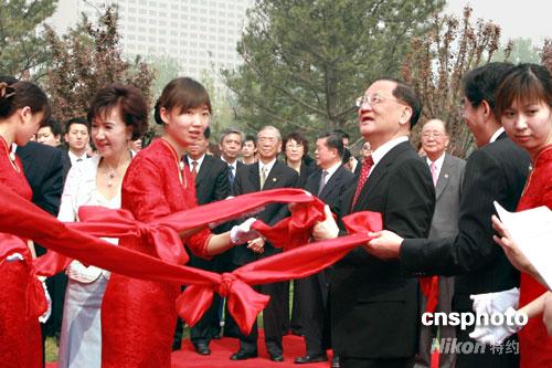 連戰出席北京奧運村“水袖”雕塑安放儀式
