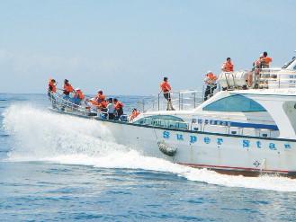 “風浪大,有點暈!”因風浪實在很大,讓部分團員暈船。中信旅游總公司日本部副部長賈玲認為,大陸觀光客可能會暈船,上船前備點藥很重要,對約折合二百元人民幣的船費,賈玲認為是物超所值。