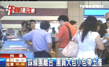 中新網6月26日電 據臺灣TVBS報道,大陸赴臺游踩線團走過臺灣22個縣市,結束11天10夜的行程后,今天上午搭機離開臺灣,對臺灣旅游景點贊不絕口,帶了不少特產回去跟親友分享。