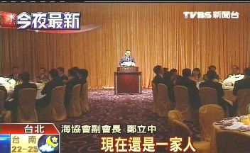 鄭立中晚間也再次談起晚宴提到的“冬季到臺北來看雨”這首歌,可惜他不會(huì)唱了。不過當(dāng)晚的氣氛讓他想唱首歌,歌名就叫“我們都是一家人”,唱完之后他還謝謝大家“在精神上付出的損失”。