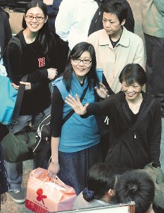 排隊等候時間,兩位女兒馬唯中與馬元中多半維持酷酷的模樣,從頭到尾拎著自己的行李與禮品,不假他人之手。周美青與兩位女兒短暫相處三十五個小時,排隊時三人偶爾也竊竊私語。
