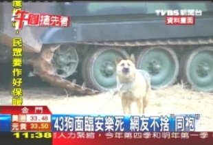 中新網12月3日電 金門地區最近有不少臺軍部隊犬被棄養;當地動植物防疫所短短20天就收到43只。有網友說,因為日前有狗咬死羊,所以臺灣軍方才會出此下策。