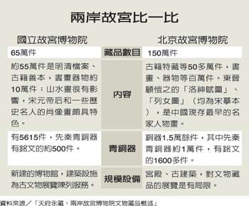 而針對(duì)鄭欣淼比較北京故宮與臺(tái)北故宮典藏?cái)?shù)量及重要性的見解,臺(tái)北故宮博物院副院長(zhǎng)馮明珠坦承,論數(shù)量的確是北京故宮較多,重要與否則“見仁見智”。對(duì)研究清史的學(xué)者來(lái)說(shuō),北京故宮是比較重要,但研究宋代藝術(shù)史的學(xué)者,一定選臺(tái)北故宮,若就文物的精致度、重要性和藝術(shù)性做比較,那應(yīng)該請(qǐng)藝術(shù)史學(xué)者來(lái)發(fā)表看法較客觀。