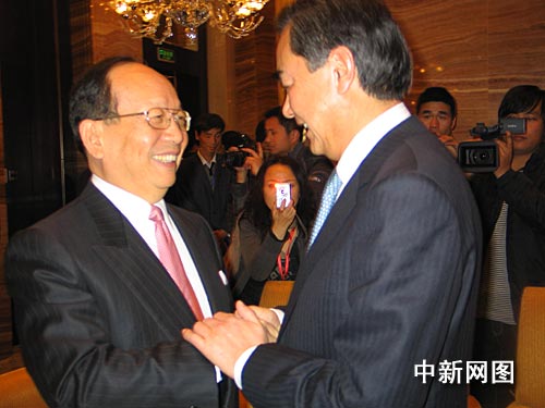 中新社西安十一月十八日電 (記者 冽瑋)十八日晚間,中國(guó)國(guó)務(wù)院臺(tái)辦主任王毅在西安出席即將召開(kāi)的海峽兩岸(陜西)經(jīng)貿(mào)科技合作大會(huì),會(huì)見(jiàn)了到會(huì)的中國(guó)國(guó)民黨副主席蔣孝嚴(yán);中國(guó)國(guó)民黨中央評(píng)議委員會(huì)主席團(tuán)主席、永豐銀行董事長(zhǎng)邱正雄等二十余位臺(tái)灣工商界人士。
