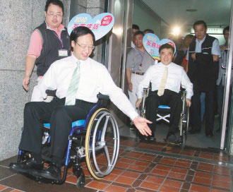 中新網6月3日電 據臺灣《聯合報》報道,臺北2010友善建筑(無障礙建筑)評選活動,2日選在獲得首屆“友善建筑”的臺北市府1樓ENJOY餐廳開跑,“內政部長”江宜樺及臺北市長郝龍斌都出席,并坐輪椅體驗無障礙設施。