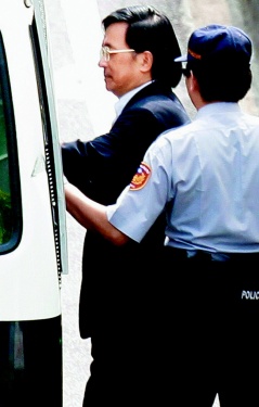 臺北地方法院審理扁家弊案進入尾聲,本周密集召開新官被告言詞辯論庭,今日全天輪到陳水扁。檢方論告時明顯有備而來,一開始播放多張投影片,第一張便是去年11月11日扁首次遭押時,他高舉銬著手銬的雙手,高喊“司法迫害”的“經典”照片,另外一張照片則是2000年扁呂就任時的照片,兩張照片形成強烈對比,檢方還諷刺扁變得太多。