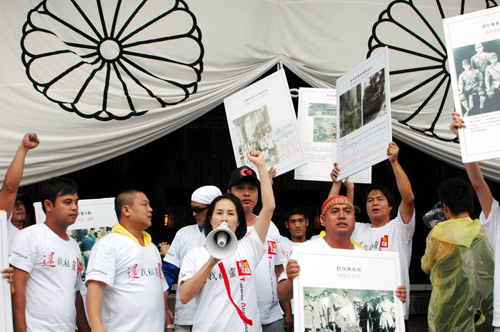 8月11日,高金素梅一行于上午9時30分左右搭車出其不意地抵達(dá)靖國神社,隨即高舉“要求靖國還我祖靈”等大型橫布條標(biāo)語,浩浩蕩蕩地列隊走向靖國神社的正殿,并高喊口號。靖國神社的警衛(wèi)人員前往阻擋,企圖奪走標(biāo)語布條,雙方發(fā)生肢體沖突。