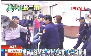 另據臺灣TVBS報道,開庭前,庭外一名女子試圖闖入法庭旁聽遭到警方制止并抬出庭外,該名女子激動喊叫,似乎相當關心陳水扁在法庭內的表現。