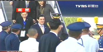 中新網1月28日電 據臺灣“今日新聞”報道,“出訪”中南美洲的馬英九27日抵達洪都拉斯,準備參加總統的就職大典。不過正當馬英九走下機時,沒想到迎賓梯居然少了最后半米的高度,馬英九踩空一步差點摔跤。