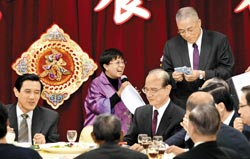除“行政院”外,國民黨也席開四十桌,辦桌請黨工吃尾牙,黨主席馬英九大方送出六項大獎,讓黨工“有吃又有拿”。歡喜過年前,馬英九還是提醒所有黨工,國民黨現在正在大力促進團結與改革,對于二月二十七日的“立委”選舉,一定會全力以赴,“希望這次有比上次更好的表現”。