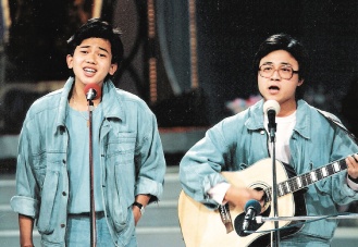 周守訓(左)參加五燈獎,模樣青澀、造型也有點土氣,但歌聲卻很清亮,曾連續衛冕長達一年。 聯合報圖
