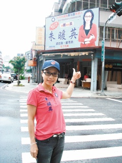 朱暖英以“溫暖的小英”為競選口號,強調“和‘暴力小英’不一樣!” 圖片來源:臺灣《聯合報》
