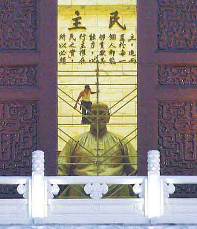 中新網12月27日電 據臺灣《聯合報》報道,臺當局“教育部”擬在民主紀念館(原中正紀念堂)蔣介石坐像前加裝鋼架,形似讓蔣介石“坐牢”,蔣家第三代、“立委”蔣孝嚴聞訊痛批“簡直荒唐到了極點,將會引起極大的民怨,對民進黨的選舉將是更大的敗筆。”