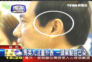 幕僚私下透露,馬英九這一頭黑發其實是染的,而且馬英九完全不假他人之手,通通自己來,還因此省下不少上美容院的錢。只是馬英九畢竟不專業,偶爾會被眼尖的人發現,出現一兩撮沒有染到的頭發。