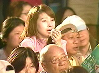 據(jù)臺灣東森新聞報道,雖然馬英九陣營已自行宣布當(dāng)選,不過臺北市的長昌總部仍有大批支持者留守,高舉旗幟、呼喊口號。看到謝長廷慘敗,支持者在臺下忍不住拭淚,但仍努力打起精神,跟著民代大呼口號,持續(xù)為民進黨打氣加油。