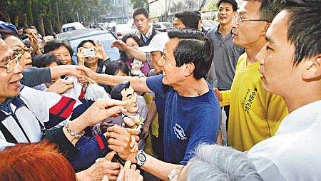 據臺灣《蘋果日報》報道,昨天清晨4時不到,逾20名馬迷已在馬家大門口守候,準備向出門跑步的馬英九要簽名及握手。上午7時30分,馬英九跑完步回家照例向等候的馬迷致意,一開始場面還算平和,沒想到群眾太過熱情,先是有人插隊,加上有人向前擠著要簽名,海報、報紙擋住了特勤人員視線,還有人被擠得跌倒,場面混亂到連特勤人員都擋不住,維安隊形幾乎被沖散。