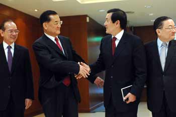 據(jù)“中央社”報(bào)道,馬英九中午在蕭萬(wàn)長(zhǎng)、國(guó)民黨副主席詹春柏等人陪同下,到兩岸和平發(fā)展基金會(huì)拜會(huì)連戰(zhàn),雙方晤談一個(gè)多小時(shí)。