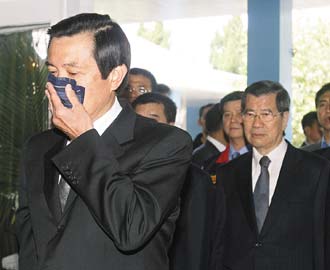 馬英九、蕭萬長5日到蔣經國頭寮陵寢謁陵,馬英九感傷落淚。