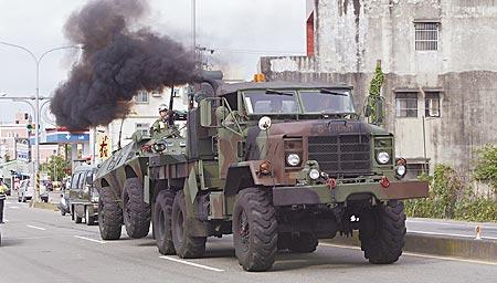 演習啟動后,臺軍憲兵所屬裝甲車立刻駛出營區,這也是“玉山兵推”實行以來首度有裝甲車在白天開入市區。