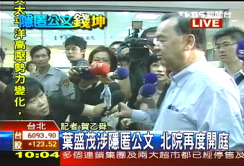 中新網9月22日電 針對前臺灣“調查局長”葉盛茂涉嫌隱匿公文一案,臺北地方法院22日再度開庭。葉盛茂到庭受訪時沒有多作表示,只說會“據實以告”。
