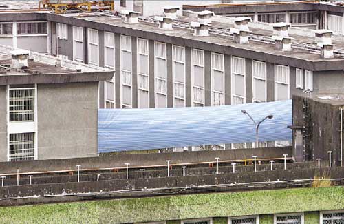 中午時(shí),看守所突然在扁放風(fēng)的球場邊,拉起一大塊帆布,避免讓扁再被媒體拍到。對(duì)此,看守所副所長李大竹受訪時(shí)表示,這是基于維安的考慮,并評(píng)估其它放風(fēng)處是否也要比照辦理。