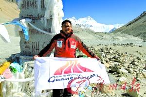 從廣州到溫哥華再到珠穆朗瑪峰,8個(gè)月的時(shí)間,上萬公里的路程,這幅肩負(fù)著廣州亞運(yùn)會(huì)宣傳任務(wù)的旗幟終于飄揚(yáng)在珠峰上。