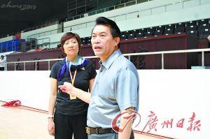 國家體育總局乒羽中心主任劉鳳巖(右)與天河體育館團(tuán)隊(duì)主任關(guān)渭貞在演練現(xiàn)場