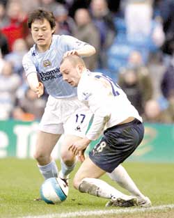 曼城昨天終于迎來(lái)今年主場(chǎng)首勝,2比1戰(zhàn)勝熱刺,孫繼海在終場(chǎng)前替補(bǔ)出場(chǎng),差點(diǎn)奉獻(xiàn)一次助攻。