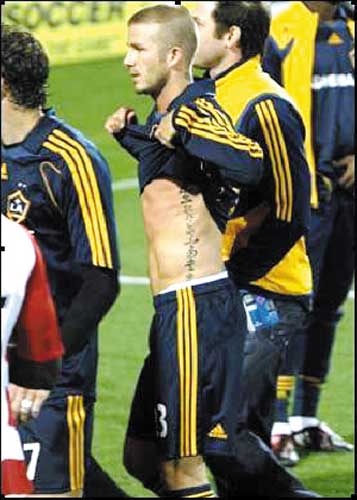大衛(wèi)·貝克漢姆近日隨洛杉磯銀河到訪(fǎng)中國(guó)的上海和香港,而此行過(guò)后,小貝身上也留下了中國(guó)的印記,“萬(wàn)人迷”身軀的文身增加了肋部的一行中國(guó)文字。