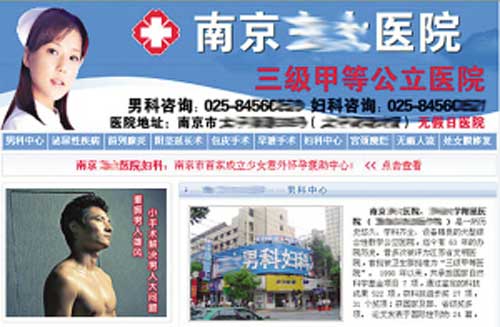 率先發(fā)現(xiàn)這一事情的是某李毅球迷組織,他們的偶像李毅竟然上了南京某性病醫(yī)院的宣傳網(wǎng)站的頭條位置。一則廣告是李毅低垂著腦袋,下面配的文字是“東大男科恢復(fù)您的自信與健康”,而另一則廣告則更加“露骨”,李毅的半身裸照配著“小手術(shù)解決男人大問(wèn)題,重振男人雄風(fēng)”的文字。某球迷憤憤不平地表示:“這樣的文字,再配上大帝裸露上半身的照片,給人的感覺(jué)要么是李毅通過(guò)這樣的手術(shù),重振‘雄風(fēng)’的,要么就是李毅成了這家性病醫(yī)院的代言人!”