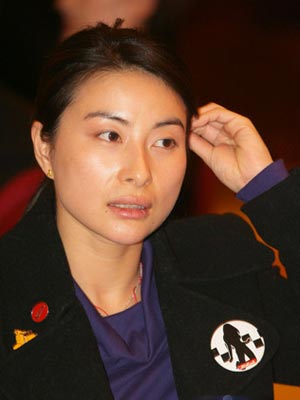 獨自前往的郭晶晶有些孤單,圖為她在為某領導講話勉強鼓掌。
