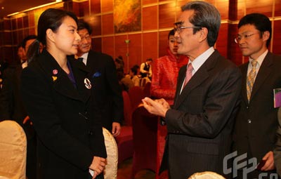 日本工作人員爭相與跳水皇后郭晶晶合影留念。