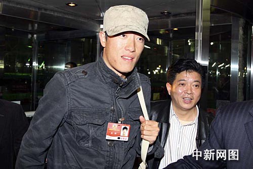 3月10日晚9時20分左右,中國田徑運動員劉翔以全國政協委員的身份飛抵北京,參加正在舉行的全國政協會議。 中新社發 富田 攝