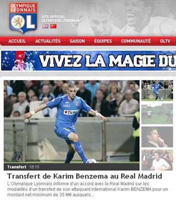 中新網7月2日電 北京時間今日凌晨,里昂官網宣布:球隊當家前鋒本澤馬將加盟西甲豪門皇馬,轉會費為3500萬歐元。這是繼卡卡、C羅和阿爾比奧爾之后,弗洛倫蒂諾今夏為皇馬引進的第4名強援。