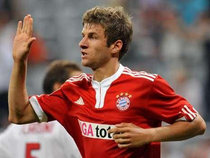 在德國隊,T.穆勒被安排在右路,與司職左前衛、同樣年少成名的厄齊爾一道,組成了德國戰車青春四射的兩翼。