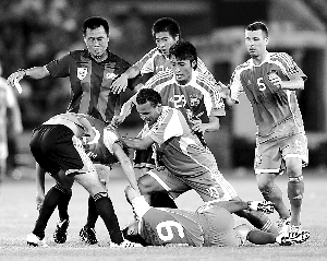本報訊 (記者張磊)昨日下午3時,北京國安21名球員前往杭州備戰周日的比賽。上午,李章洙為周四沒有打滿全場的球員安排了一堂訓練課,“為了讓隊員達到比賽狀態。”中信國安副董事長羅寧也來到現場觀看訓練,并與教練組在球場邊召開了工作會議,會議的核心是如何在后面的比賽中激發全體球員的激情。“現在對教練組提出了更高的要求,考驗教練組智慧的時候到了。”羅寧說。