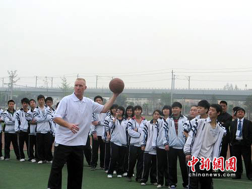 16日,NBA傳奇明星克里斯·穆林及NBA發展聯盟球員、北京奧神隊部分球員來到都江堰青城山高級中學,與320名該校籃球運動員一起進行籃球訓練活動。雖然語言不通,學生們仍在大球星的帶領下傳球、運球、上籃,過足了一把NBA打球的癮。