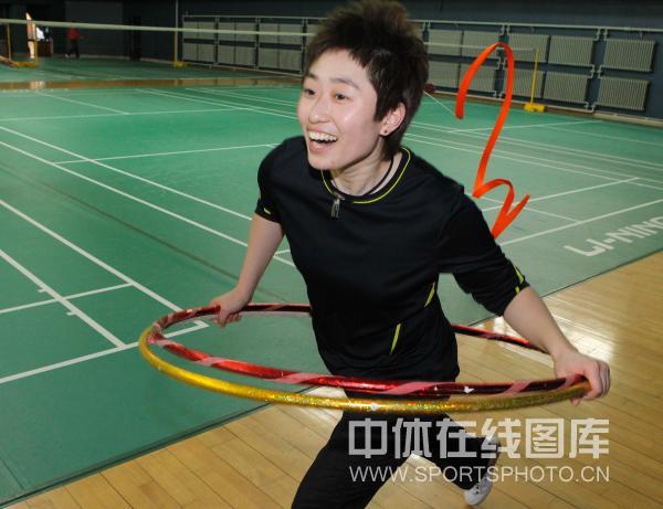 昨天(2日)原本是羽毛球隊的公開課,但是剛上到五樓便聽見一段火熱的音樂。女雙組的姑娘們正合著音樂利用繩子、呼啦圈等道具作出各種高難度的動作,站在一旁的教練一邊說一邊用手或指揮或示范著。向隊員打聽后才知道,這教練開始來頭不小——北京奧運會藝術體操銀牌得主隋劍爽。