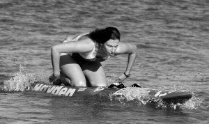 這純粹是“誤導”!幾乎每一分每一秒,海上交通事故、風暴、迷霧、傷病、暴曬以及鯊魚,都可能要了這三個勇敢女人的命,因為她們的工具——沖浪板根本沒法保證安全。這是種相當原始的方式,三個女人每次跪著或者趴在沖浪板上用手劃2小時,然后換人替班。每人每天劃4次,24小時日夜兼程,以保證每天100公里以上的進度。沖浪板除了載人,就沒有放其他物資的空間了,所以她們只隨身帶一小包,里面只有3件東西:干衣服、照明燈和救生煙火。