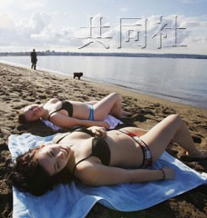 溫哥華冬奧會即將開幕,但當地今年卻遭遇暖冬。照片為在溫哥華岸邊享受日光浴的女性。(共同社)